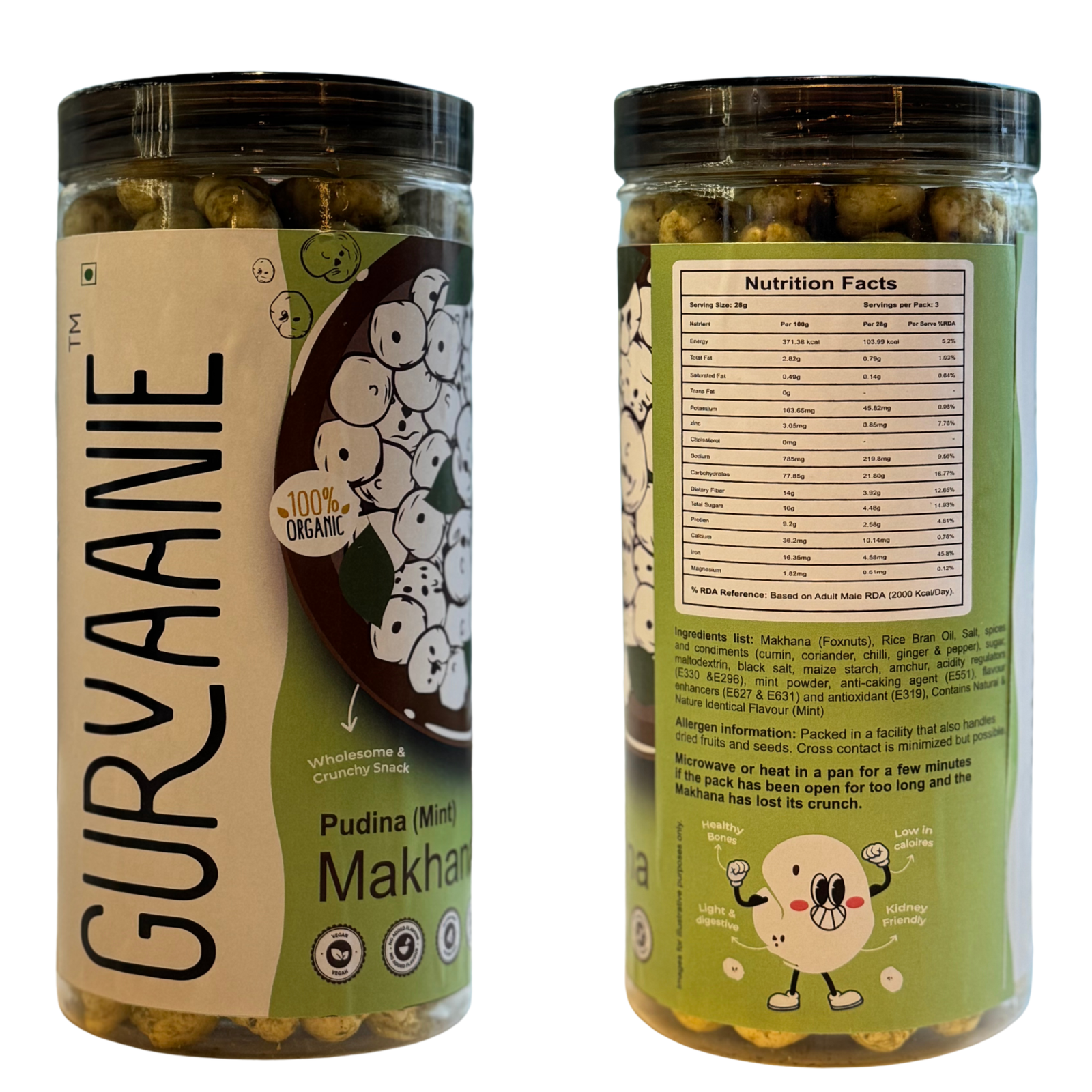 Product Name | Gurvaanie Peri Peri and Pudina Combo Flavoured Makhana (Foxnuts). A Light & Crunchy Healthy Indian Snack |