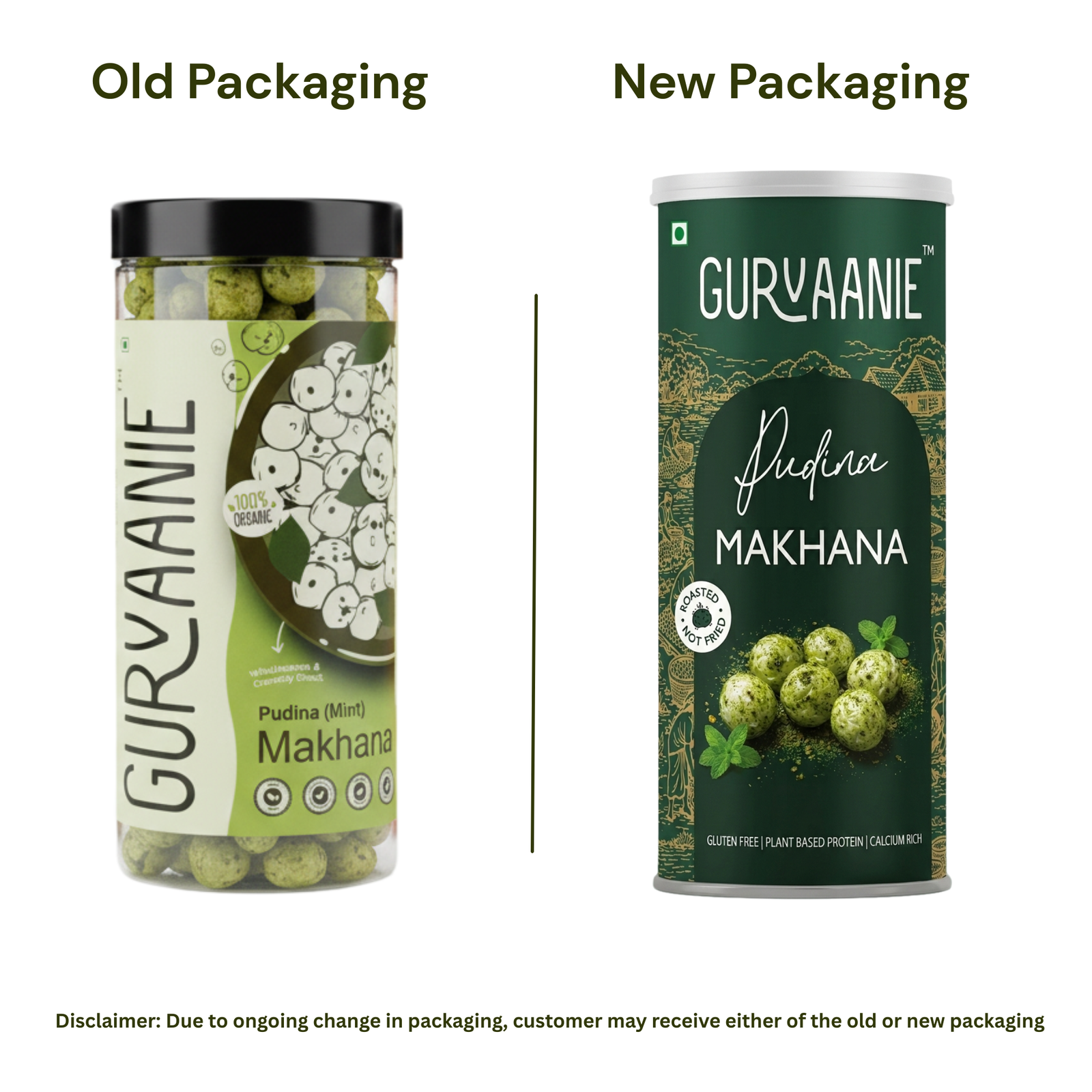 Product Name Gurvaanie Mint (Pudina) Flavoured Makhana (Foxnuts). A Light & Crunchy Healthy Indian Snack